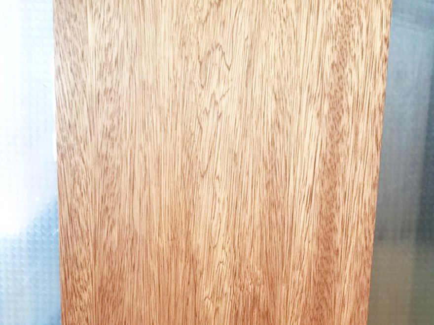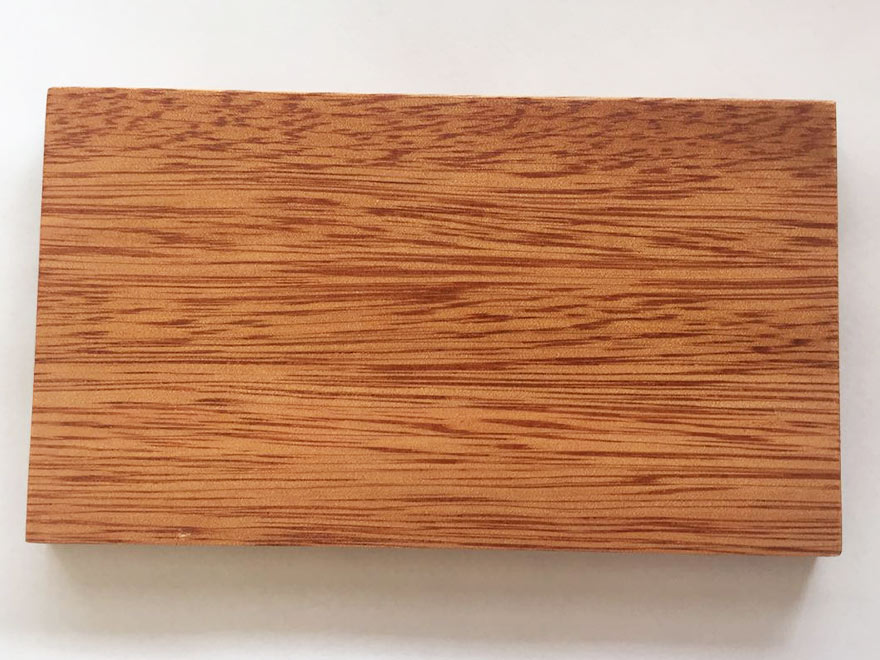 常綠喬木,高約40m,直徑0.6~1.5m,原木常見脆心。材表常留有淡黃色樹液。本屬約有100種,分布于東南亞、南太平洋、馬達(dá)加斯加和南美洲等地區(qū),主要從馬來西亞、巴布亞新幾內(nèi)亞、印尼進(jìn)口,量大。 樹皮:很厚,有時達(dá)4cm,不易剝離。外皮較硬;較厚;灰白色至灰褐色;具縱裂溝,較深較寬;易薄片狀剝落。內(nèi)皮紅棕色;韌皮纖維發(fā)達(dá);石細(xì)胞發(fā)達(dá);層狀排列。 橫截面:心邊材區(qū)別明顯。心材玫瑰紅色至紅褐色,具有褐色細(xì)條紋。邊材淺黃或淺灰褐色,窄。生長輪略可見。 宏觀構(gòu)造:散孔材。管孔肉眼下明顯;略少,單管孔;呈斜列或徑列;含深色樹膠。軸向薄壁組織放大鏡下明顯,離管帶狀,斷續(xù)而稀疏,不均勻。木射線放大鏡下略見,略密,甚窄。 木材材性光澤強(qiáng);花紋美麗。紋理交錯;導(dǎo)管粗獷,做產(chǎn)品立體感整體效果較強(qiáng),穩(wěn)定性中等;握釘力強(qiáng),結(jié)構(gòu)粗;重量和強(qiáng)度中等;硬度略高;干縮大。鋸、刨容易,易起毛和撕裂;油漆、拋光和膠黏性能良好;略難釘釘;略耐腐。干燥宜慢,易開裂、翹曲。 木材用途一般適用于門窗、家具、工藝品、木門等。